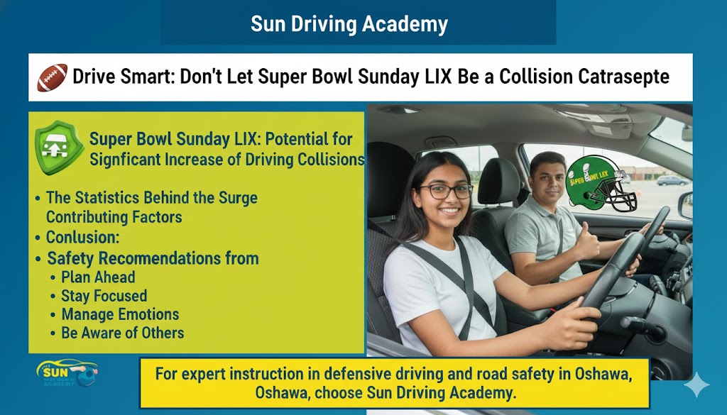 At Sun Driving Academy in Oshawa, we believe that being a safe driver is about more than just passing your test—it’s about making responsible choices for life. Understanding the risks on Super Bowl Sunday is the first step toward a safer game day for everyone.