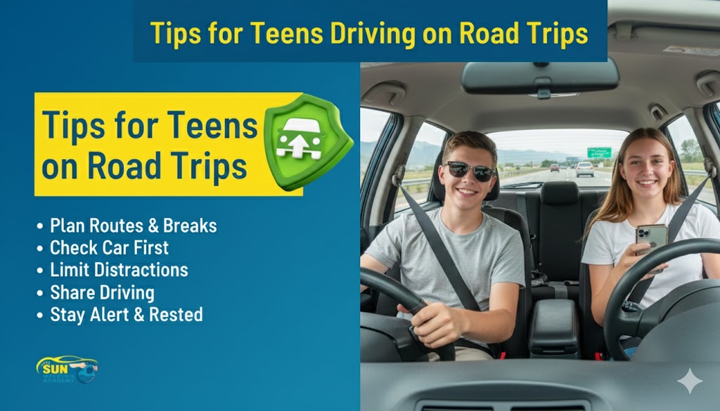 Road trips are exciting, especially for teenagers who are new drivers and eager to explore new places. But before hitting the open road, preparation and safe driving habits are essential. Whether you’re planning a quick weekend trip or a long-distance adventure, these expert tips from Sun Driving Academy will help teen drivers stay safe and confident.
